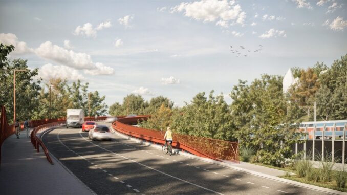 Nový nadjezd nad frekventovanou tratí v pražské Velké Chuchli začíná stavět Správa železnic. (vizualizace: Správa železnic)