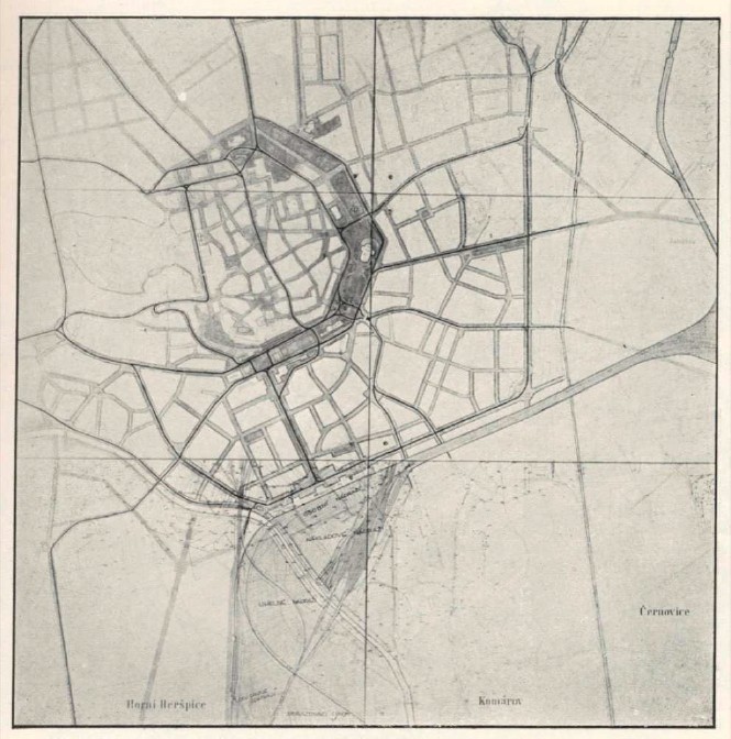 Tento soutěžní návrh (heslo „Střed republiky“) byl oceněn nejvyšší, třetí cenou (první dvě ceny nebyly uděleny, druhou třetí cenu získal návrh „Oja“, jehož autorem byl profesor školy architektury brněnské německé techniky Vinzenz Baier) a byl historicky prvním projektem, který navrhnul novou polohu brněnského nádraží a nové vedení železničních tratí skrze město přinášející redukci drážních ploch. V technické zprávě návrh dokazoval, že regulaci Brna nutno začít vyřešením nádražní otázky.