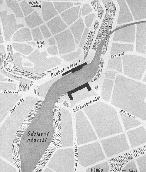 Nový směrný územní plán dokončený v roce 1968 Útvarem hlavního architekta, založeném roku 1964, pod vedením architekta Zdeňka Chlupa a Zdeňka Kubíčka změnil polohu „odsunutého nádraží“ do polohy dolního, rosického nákladního nádraží, tedy de facto do polohy navržené nejvýše oceněným návrhem soutěže z roku 1927 (Fuchs, Sklenář, Peňáz). Tohoto situování se držel i následující směrný územní plán z roku 1982 vypracovaný v Brnoprojektu pod vedením architekta Miloslava Kramoliše.