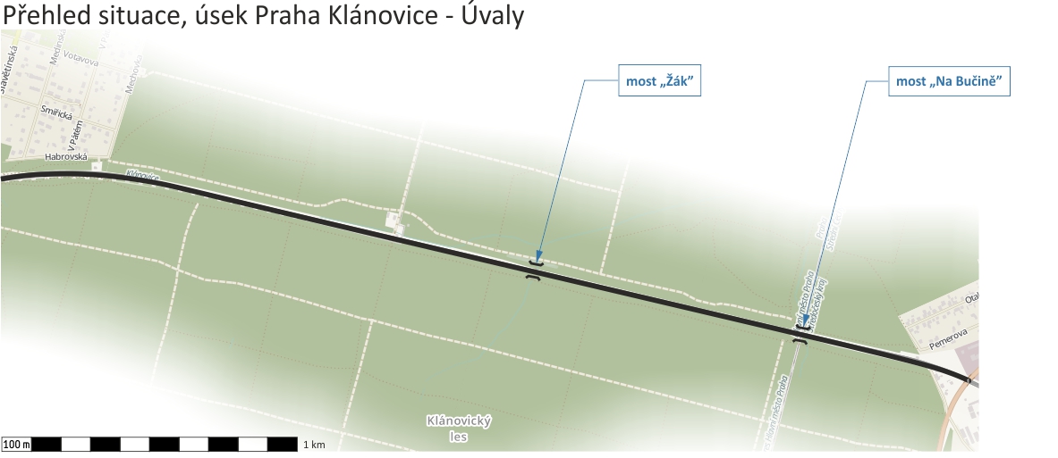 - dva mosty (starý podchod v Klánovicích a starý podchod v Úvalech u přejezdu)