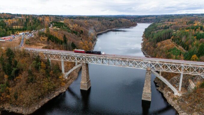 Zatěžovací zkouška nového železničního mostu u Červené nad Vltavou dne 20.11.2024 (zdroj: FB Budějovice DNES):