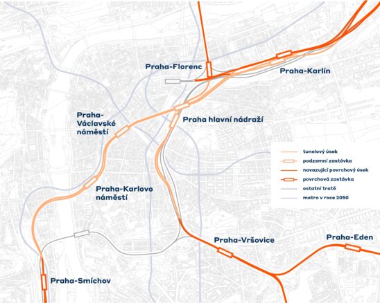 „Centrální komise Ministerstva dopravy vybrala nejvhodnější variantu, v rámci které se v centru Prahy vybudují dvě tunelové trasy v délce 10,6 kilometru a pět nových stanic. Tunely se protnou ve dvou úrovních v centrální stanici pod hlavním nádražím. Jeden povede pod stávajícími podchody na nástupiště, druhý pak bude ještě o úroveň níže. Obě části stanice propojí tunel s eskalátory, vestibuly se budou nacházet na náměstí Winstona Churchilla a v nové odbavovací hale hlavního nádraží,“ říká ministr dopravy Martin Kupka.