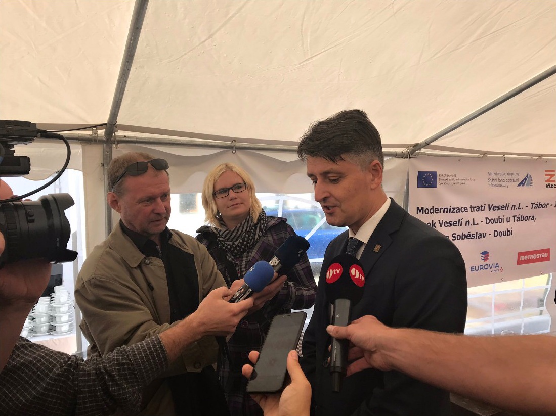 Přestože byla stavba zahájena již v září přípravnými pracemi (informovali jsme zde), ve středu 16.října 2019 byla poklepem na putovní kolejnici stavba modernizace trati ze Soběslavi do Doubí u Tábora slavnostně zahájena.