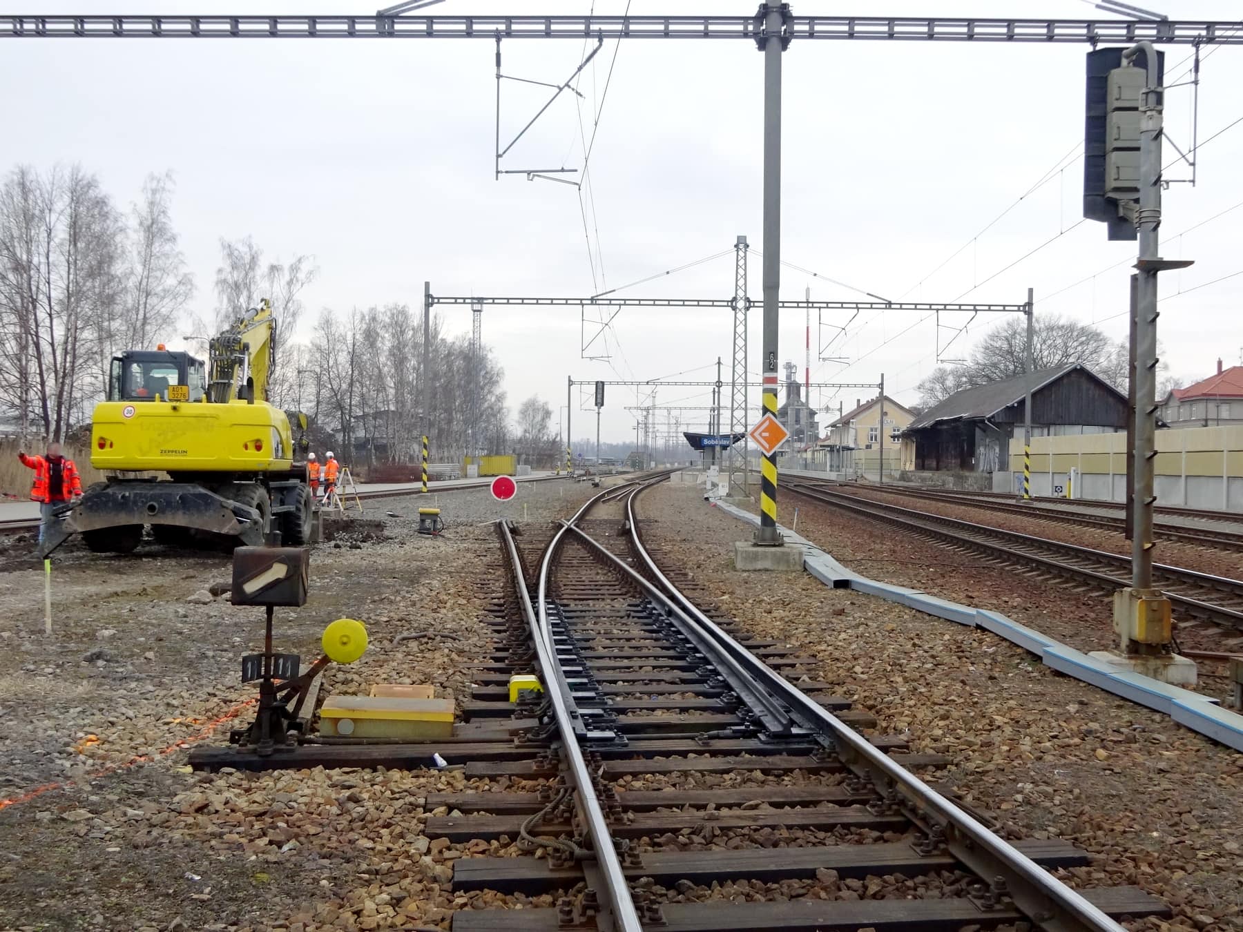Díky mírné zimě mohly na stavbě pokračovat terénní úpravy. Zasypával se tunel a dodělávali protihlukové stěny. Pro budoucí kolejový svršek se navážel štěrk a v zářezech stavěly gabionové zdi. Stožáry TV jsou již vztyčeny na mnoha místech přeložky, někde i s branami. To vše uvidíte ve fotogalerii.