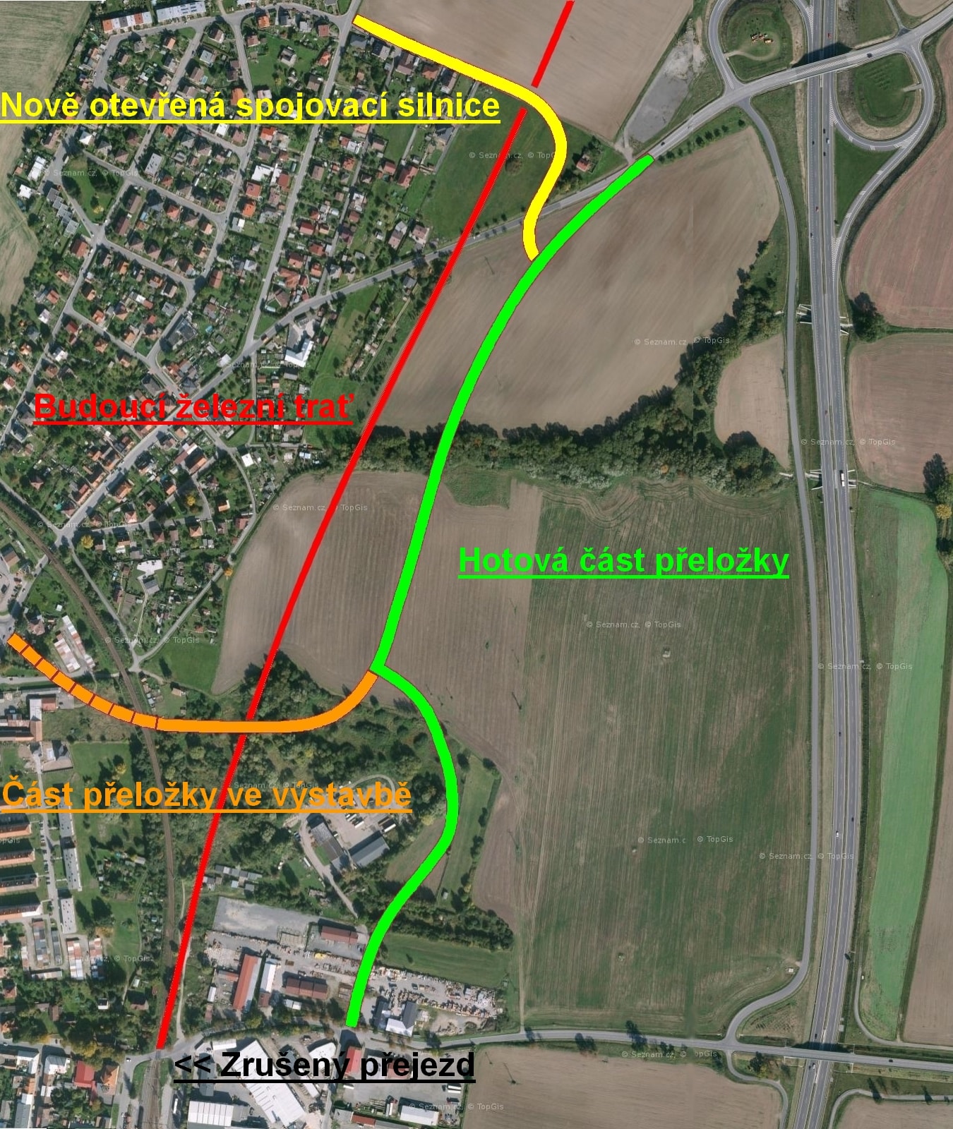 Zároveň byl uzavřen přejezd na Roudenském zhlaví pro automobily a změněn na přechod pro pěší. Objížďka vede přes nově postavenou silniční spojku, horem přes Zvěrotický tunel.