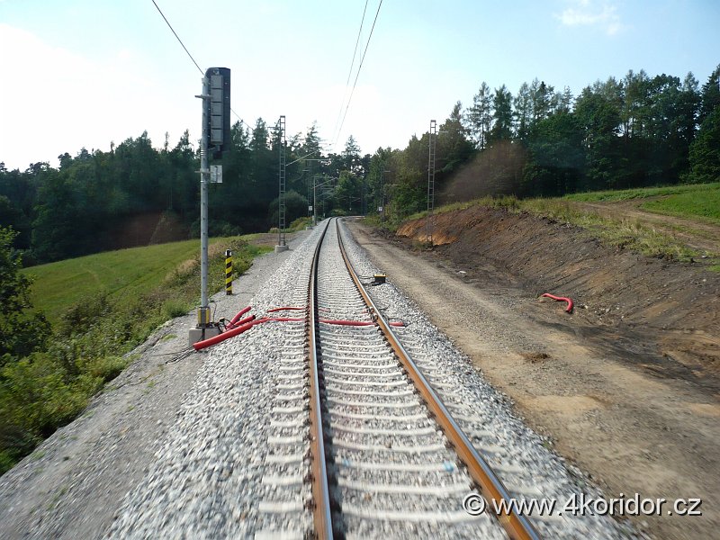 | Vjezdové návěstidlo odbočky Bedrč "2L". Všechny fotografie z dneška foceny z jedoucí lokomotivy, omluvte odlesky na okně. | 22-08-2007 11:44:33 |