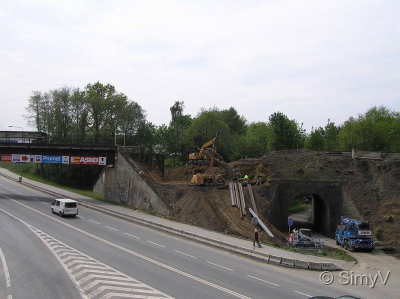 Tábor - příprava mostního provizoria u nového hřbitova