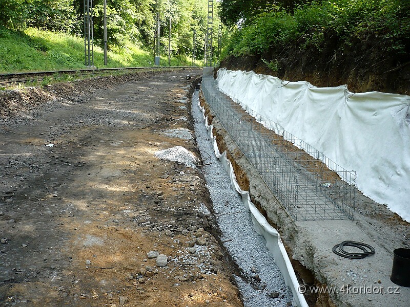 | 14.6.2007 gabionová zídka v lese Tužinka (km 137,400) |