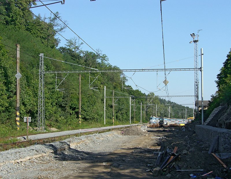 | Zpod mostu k výpravní budově, vlevo provizorní nástupiště mezi 1. a 3. kolejí | 25.8.07 9:21 |