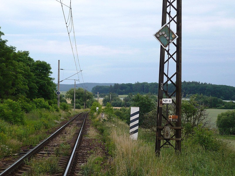 Na konci beznapěťového úseku už je první předvěstní upozorňovadlo Bystřice