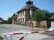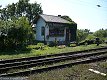 Výpravní budova v Bystřici u Benešova. V popředí závora na nákladiště, vpravo uhlobaronova váha