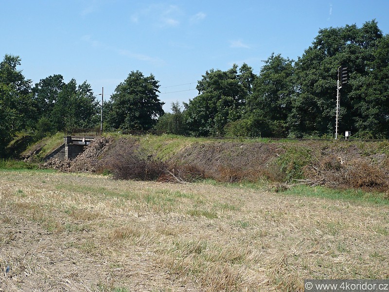 Vpravo bystřické vjezdové návěstidlo "S", kousek za ním silniční podjezd u Benziny