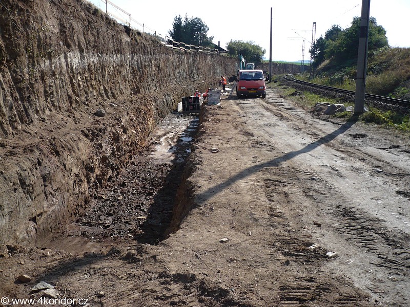 Odbagrovaný zářez u drážního domlku,zde byl most spojující silnici I/3 s Mokrou Lhotou
