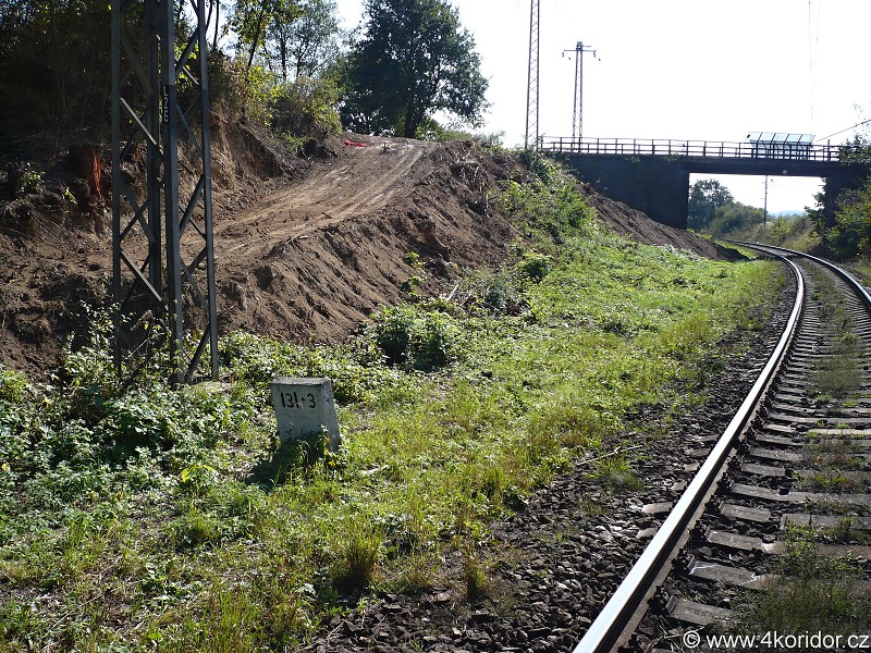 Stavební nájezd u mostu před bývalým Hr.Jírovice. Most bude snesen koncem října, poté zbořen
