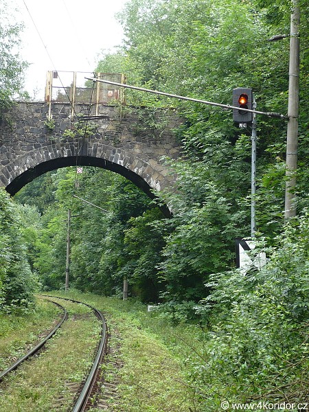 Most u Čerňáku a předvěst "Př.L" benešovského vjezdového návěstidla "L"