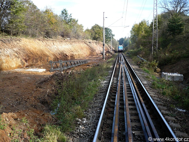 Tady je vidět, jak se stávající traťová kolej změní na 2.traťovou. Jinak bude většinu trasy jako 1.TK
