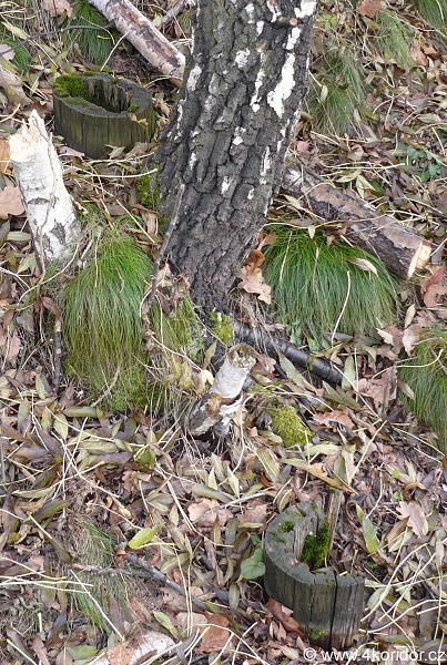 Tato bříza stačila vrůst mezi zbytky "áčka" sloupu vzdušného vedení. Těch zbytků je všude spousta