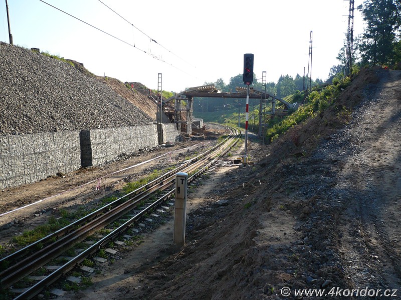 Nový most v Černém lese u Benešova u vjezdového návěstidla "L" žst.Benešov