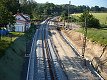Nový most v Černém lese u Benešova u vjezdového návěstidla "L" žst.Benešov Pohled z mostu k Benešovu