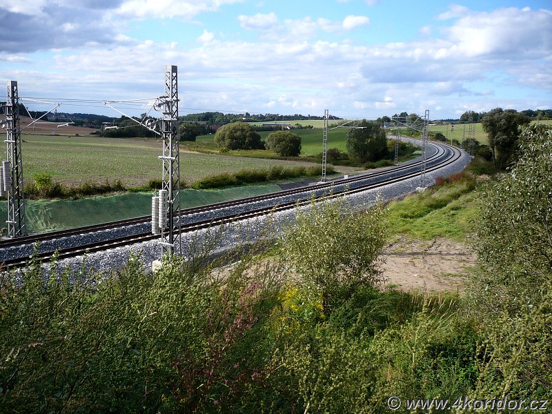 Pohled z místa bývalého mostu (u drážního domku) směrem k Benešovu