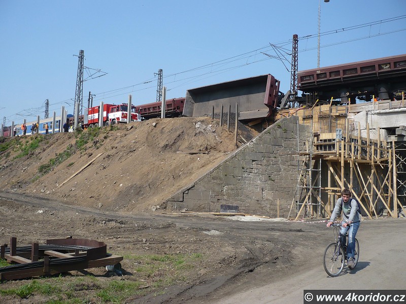 Vykolejení vozů Uas před mostem přes řeku - 13:45