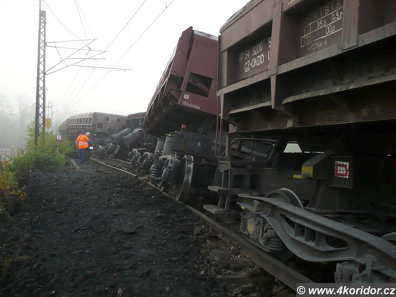 Vykolejení vozů Uas před mostem přes řeku