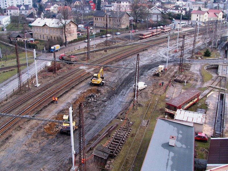 Nádraží Čerčany z nadhledu - po snesení liché skupiny kolejí