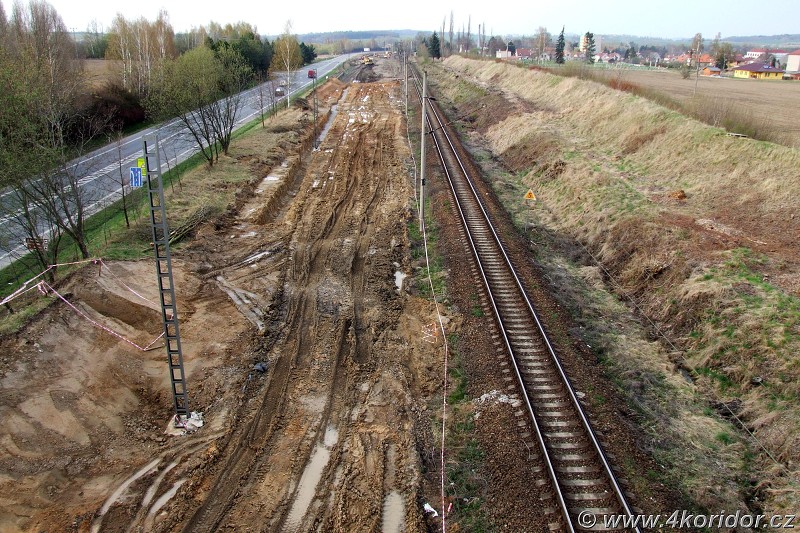Pohled z Nesvačilského mostu k Bystřici - tady už budou koleje mírně posunuty vlevo