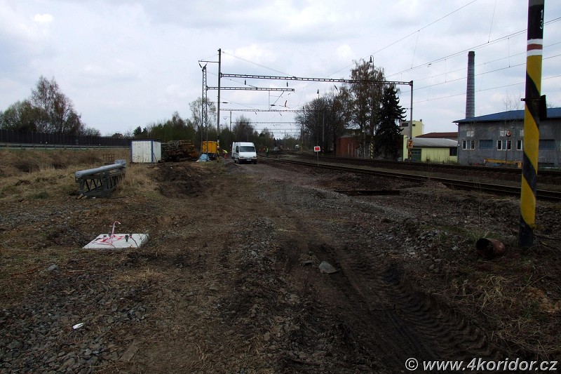 Základ trakčního stožáru vlevo od osy budoucí 1.SK u St.1