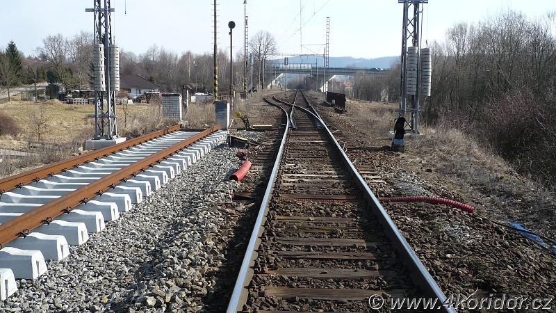 Zatím konec 1.koleje u výhybky č1 v Tomicích