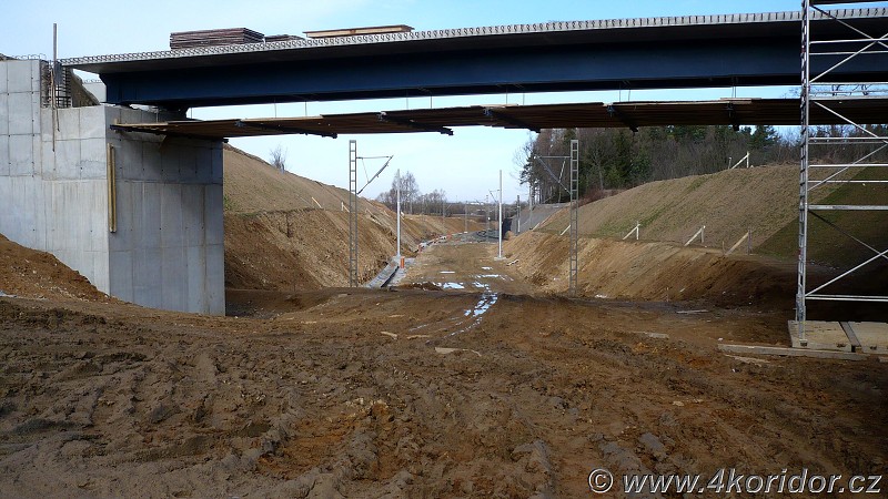 Nový most přístupové komunikace k tunelu, vzadu napojení staré trati směrem k Bystřici