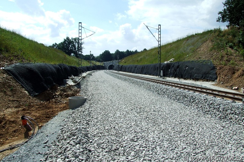 Pohled zpět do zářezu od výjezdového (severního) portálu Tomický II