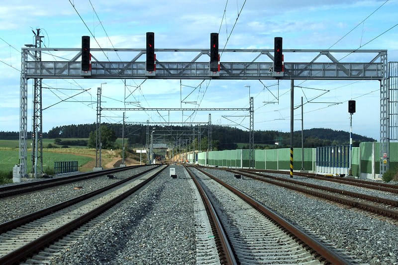 Návěstní lávka s odjezdovými návěstidly směr Benešov u Prahy