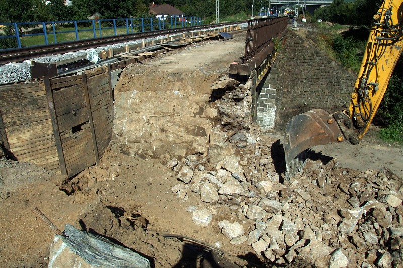 Začala demolice a následovat bude rekonstrukce druhé půlky mostu nad bývalou silnicí I/3 těsně před zastávkou Tomice