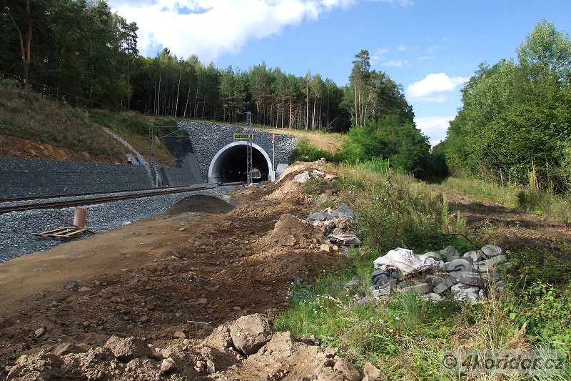 Vjezd do tunelu Tomický II., původní trať odbočuje doprava