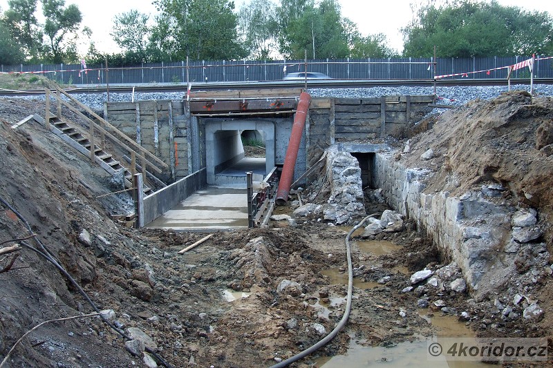 Za St.1 začala stavba nové propusti pod 2.TK namísto nevyhovující (vpravo)