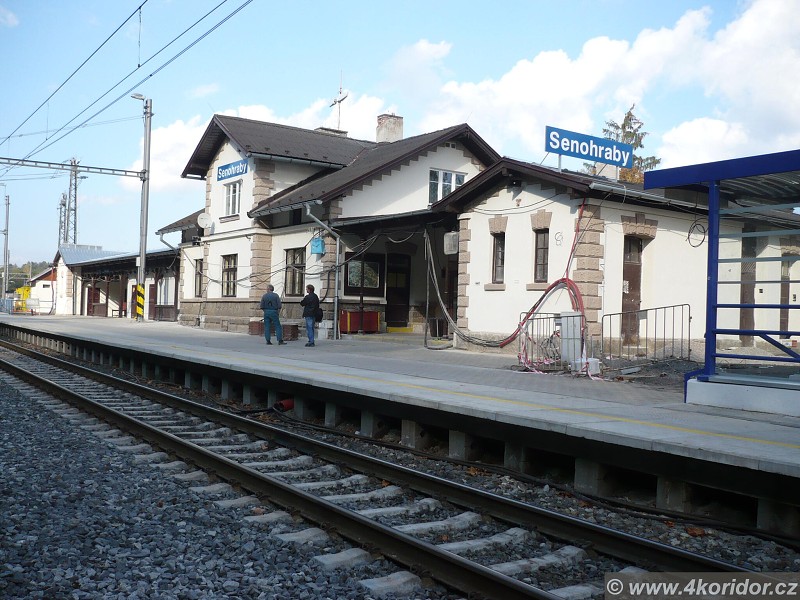 Výpravní budova s částí schodiště do podchodu na 2.nástupiště. Ještě více vpravo je šachta výtahu