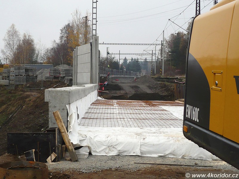 Most přes silnici Mirošovice - Mnichovice, za ním začíná peron zastávky