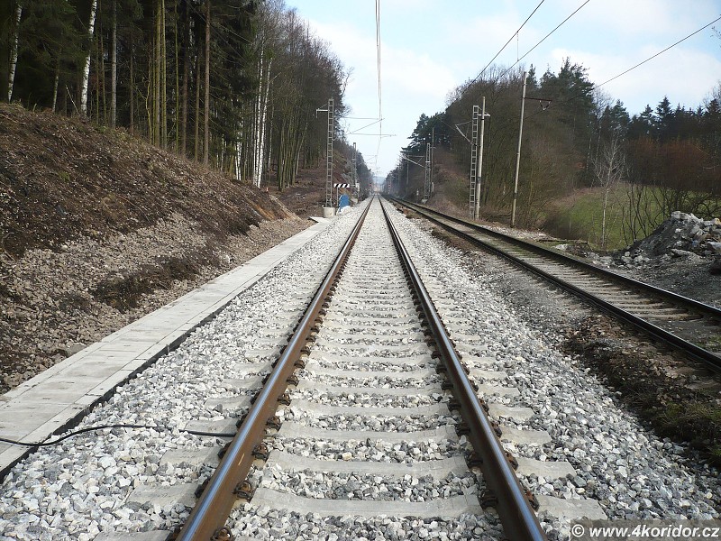 Rovinka od bývalého hradla (vpravo) k odbočce Mirošovice