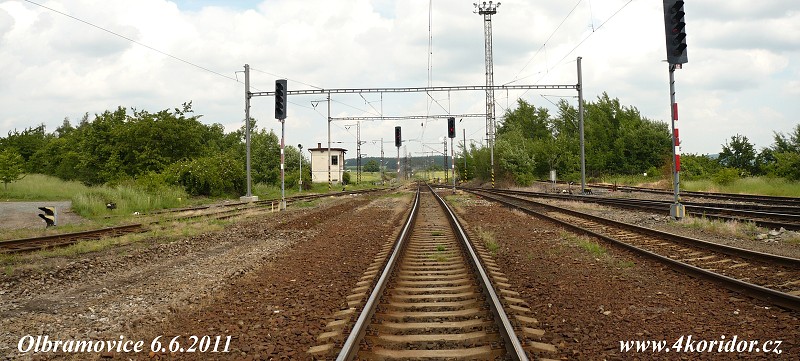 Snesené koleje 7b (zcela vlevo) a 3 na tomickém zhlaví končícího stavědla St.2. žst.Olbramovice.