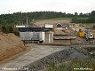 Obsyp a dostavba opěr železničního mostu nad silnicí I/18 na pozadí již obsypaného výjezdového (severního) portálu dokončeného Olbramovického tunelu.