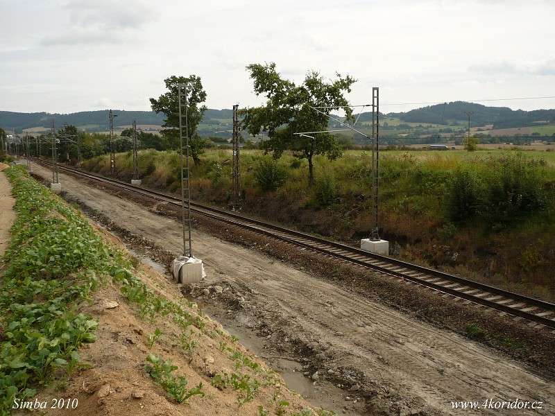 Rozsireny zarez a misto budouci zastavky - pohled k Tomicim.