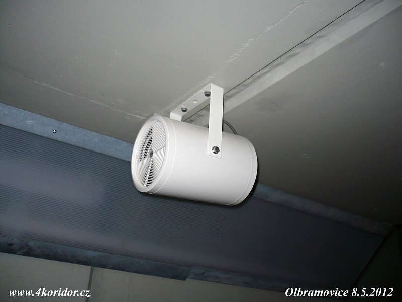 Instalovaný všesměrový reproduktor v podchodu.