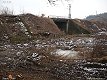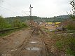 O měsíc později byl již prostor vyřezán - na snímku jsou viditelné dvě šikmé kamenné stěny s opěrnou dole - nahoře na náspu byla odstavná kolej na přistavení vozu s uhlím - po jeho otevření se sypalo uhlí rovnou z náspu dolů, do zastřešeného přístřešku. |