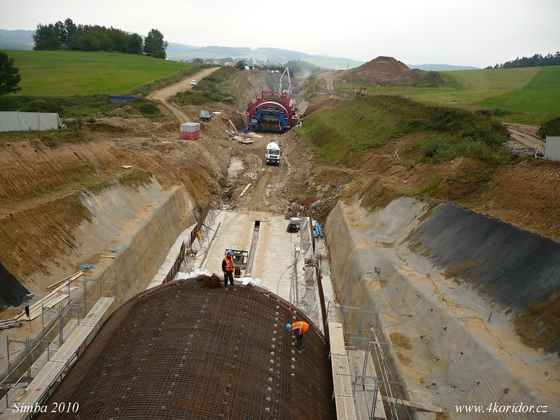 Celkovy pohled na staveniste obou tunelu - smer Votice.
