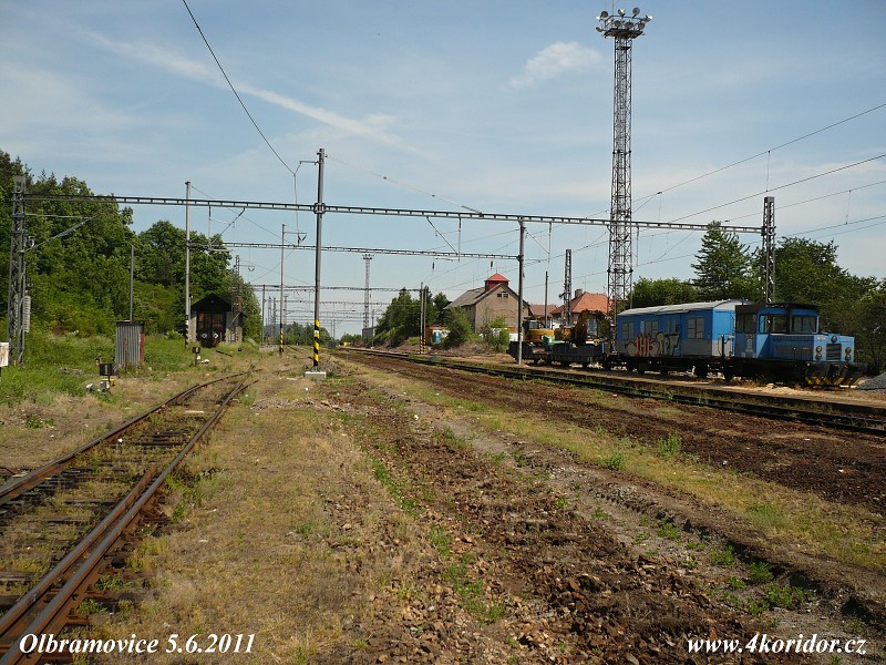 Snesená 5. a 3.staniční kolej - pohled k tomickému zhlaví.