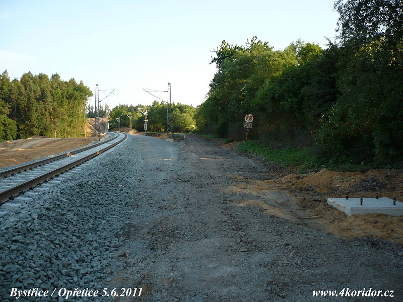 Nové a staré trasování trati - pohled k Tomicím.