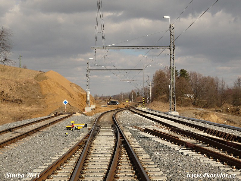 Olbramovické zhlaví žst. Votice - nová přeložka povede vlevo.