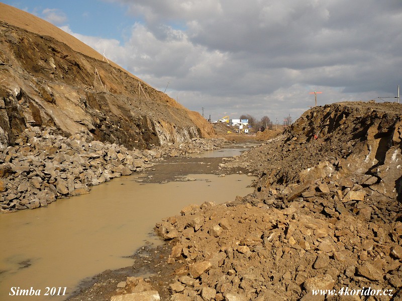 Narovnání trati v zářezu před vjezdem do Votického tunelu.