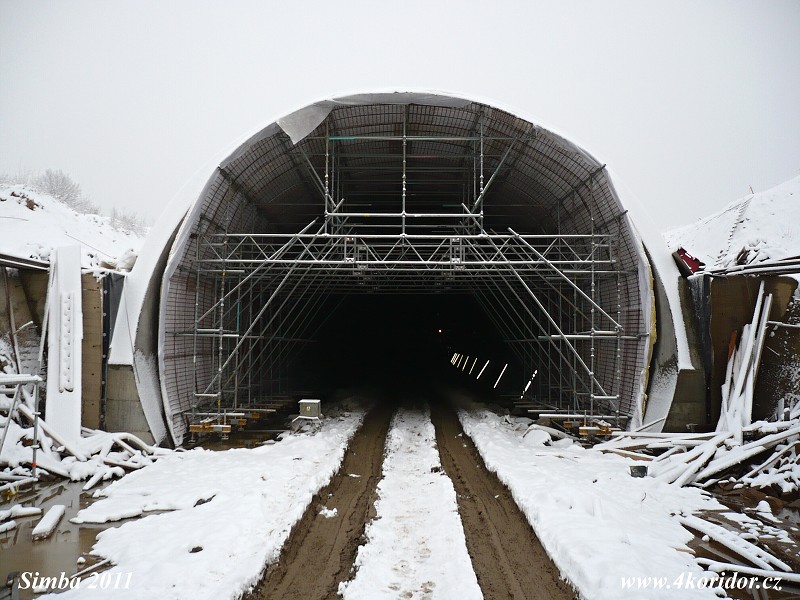 Výjezdový portál Votického tunelu v polovině února.